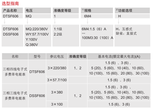 1.5(6)A,功能選項(xiàng)為互感式,則相對應(yīng)的訂貨編碼為:DTSF606MQ16M4H