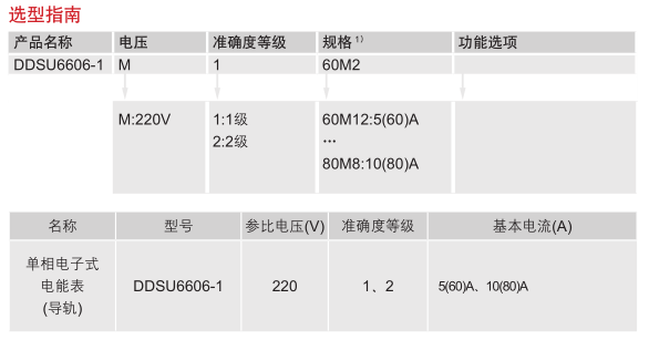 訂貨示例: 如客戶需要DDSU6606-1型單相電子式電能表(導(dǎo)軌),電壓為220V,準(zhǔn)確度等級為1,電流規(guī)格為5(60)A,則相對應(yīng)的訂貨編碼為DDSU66061M160M12。