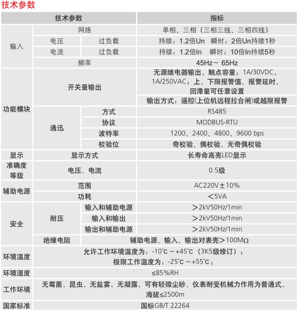 品種結(jié)構(gòu)為RS485 通訊,顯示方式為三排數(shù)碼管顯示,量程為 AC450V 則相對(duì)應(yīng)的訂貨編碼為: