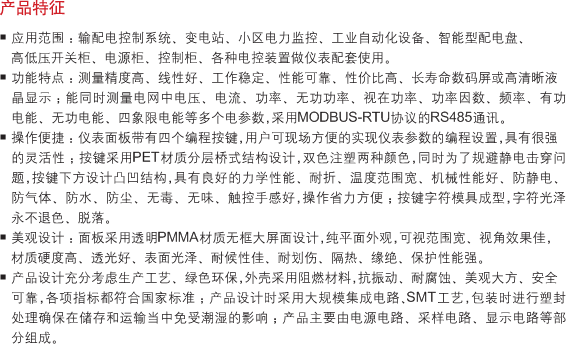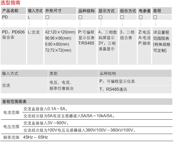 為 42 × 42, 品種結構為可編顯示儀表,顯示方式為液晶顯示,量程為 AC450V 100/5A 則相對應的