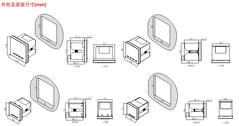 例 2 、如客戶需要三相電壓、電流、頻率組合表,產(chǎn)品名稱為組合表,輸入方式為交流,外形尺寸