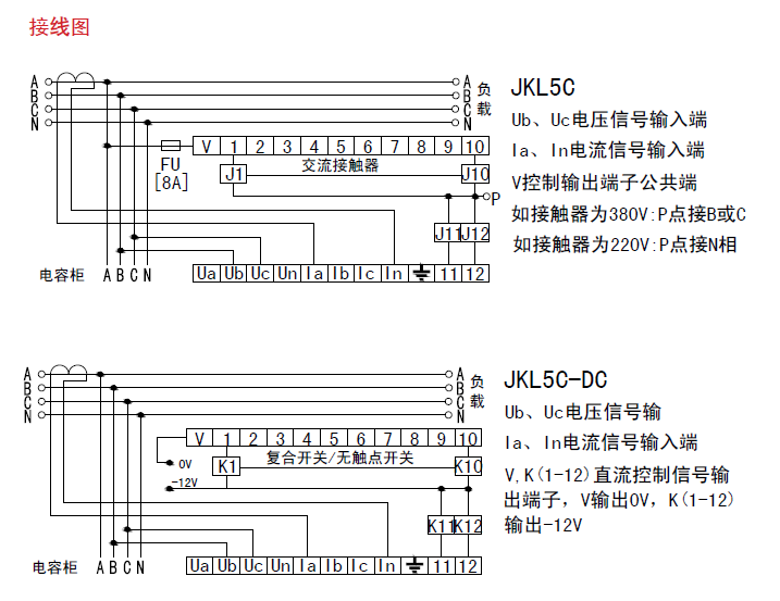 如客戶需要JKL5C型智能無功功率自動補償控制器,工作電壓為380V,規(guī)格為4回路,輸出電壓為常規(guī),則相對應(yīng)的訂貨編碼為:JKL5CQ4