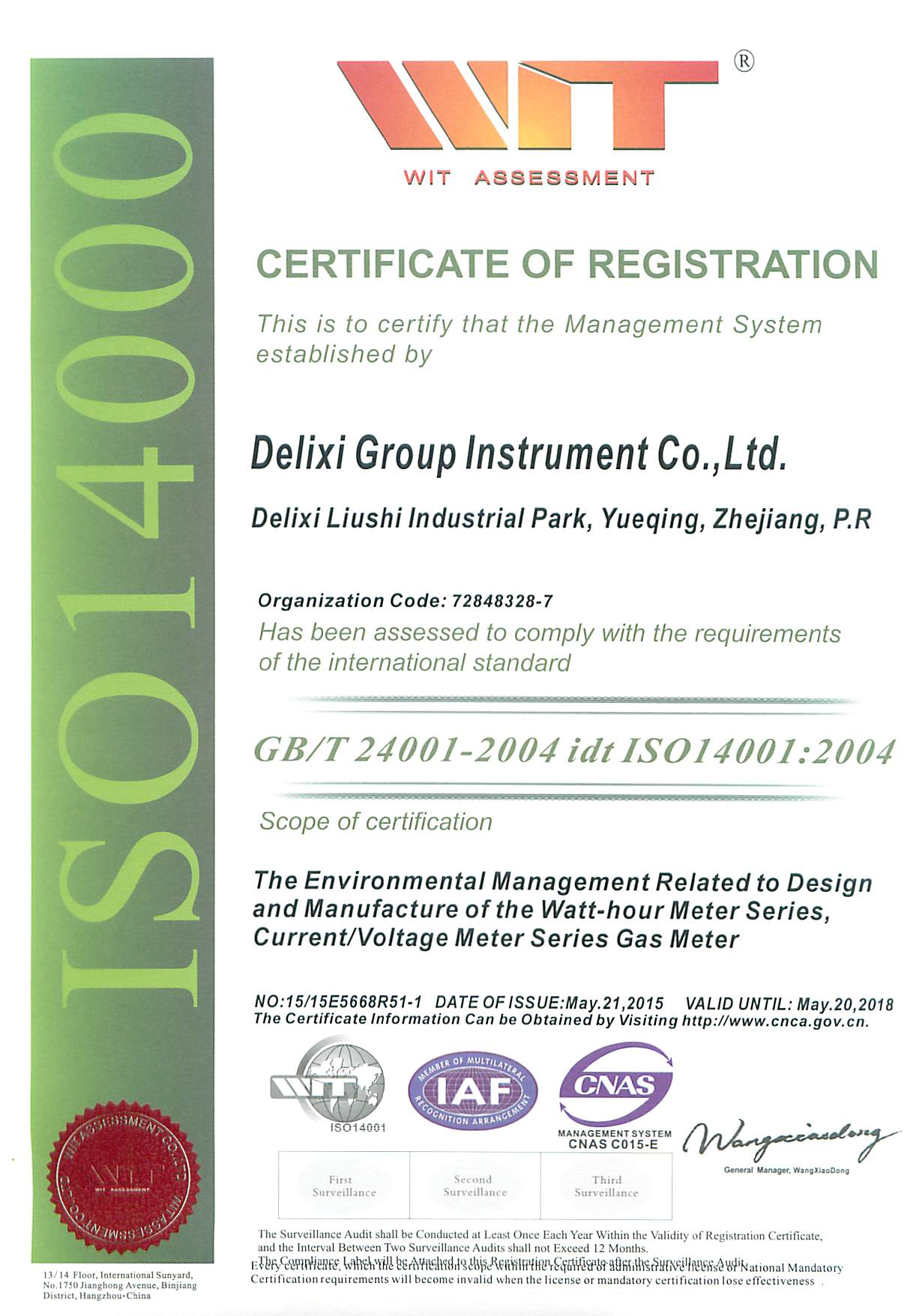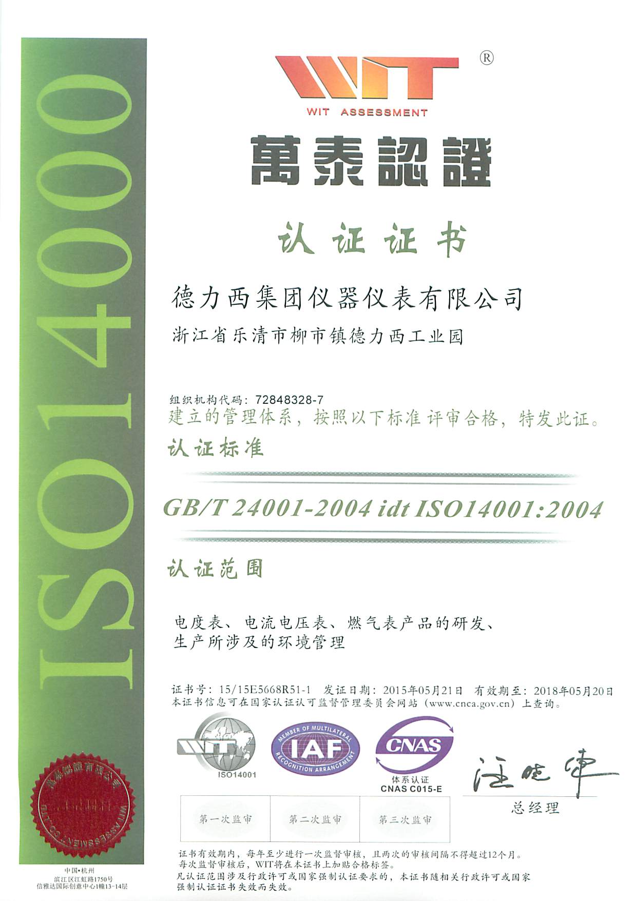 環(huán)境管理體系證書 英文