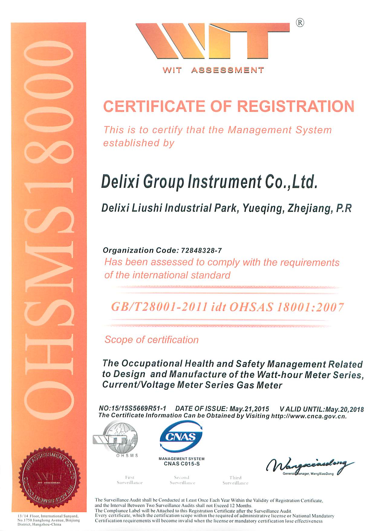 職業(yè)健康安全管理體系證書 英文