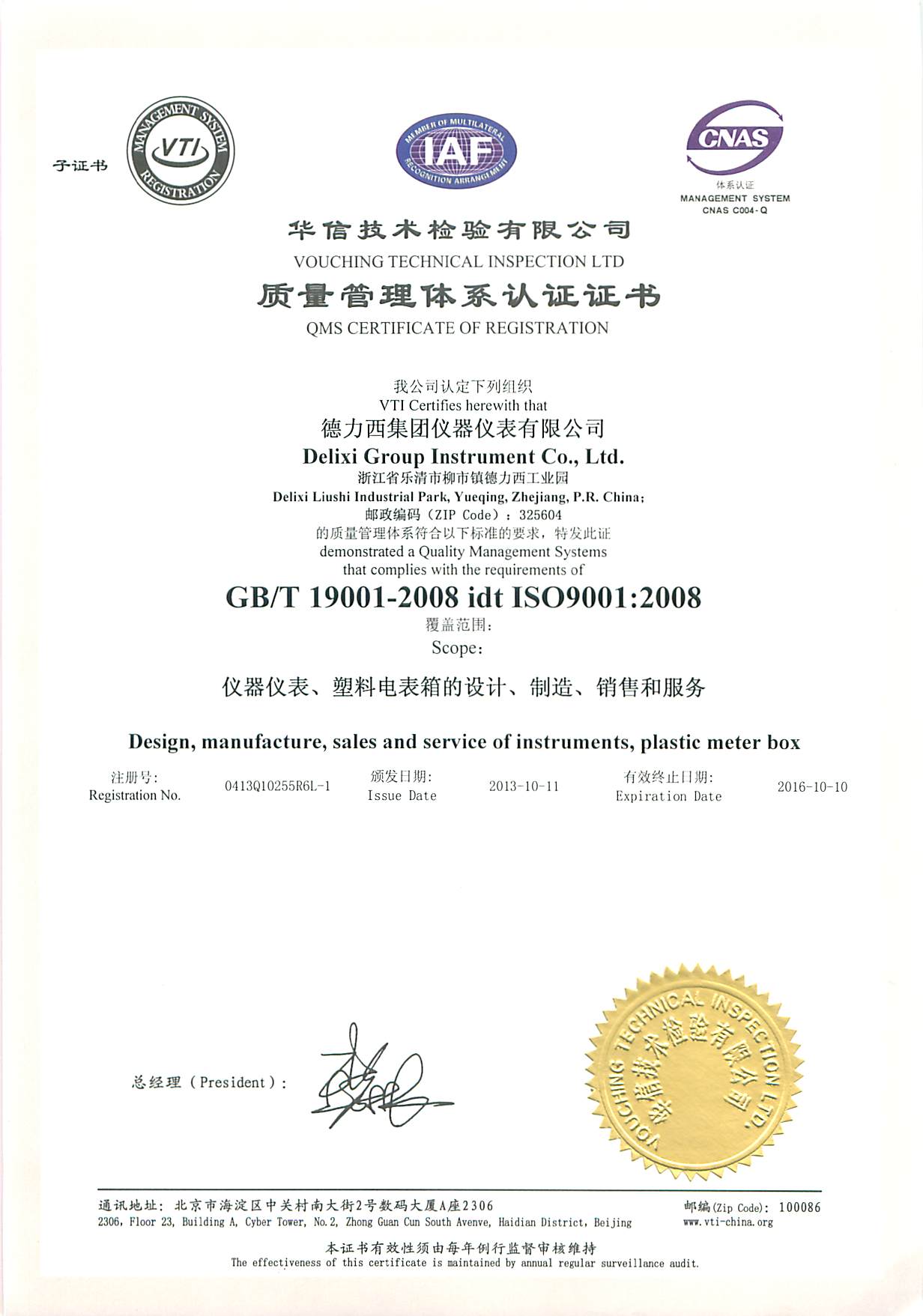 質(zhì)量管理體系認證證書