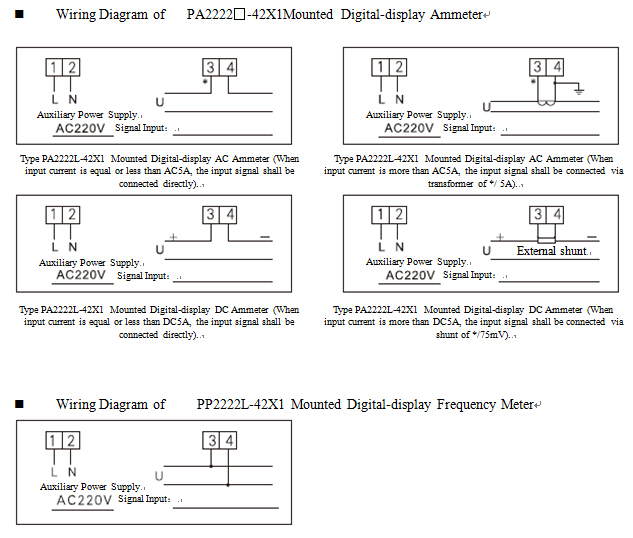 | PA:PA2222 Ammeter | L: AC C: DC |